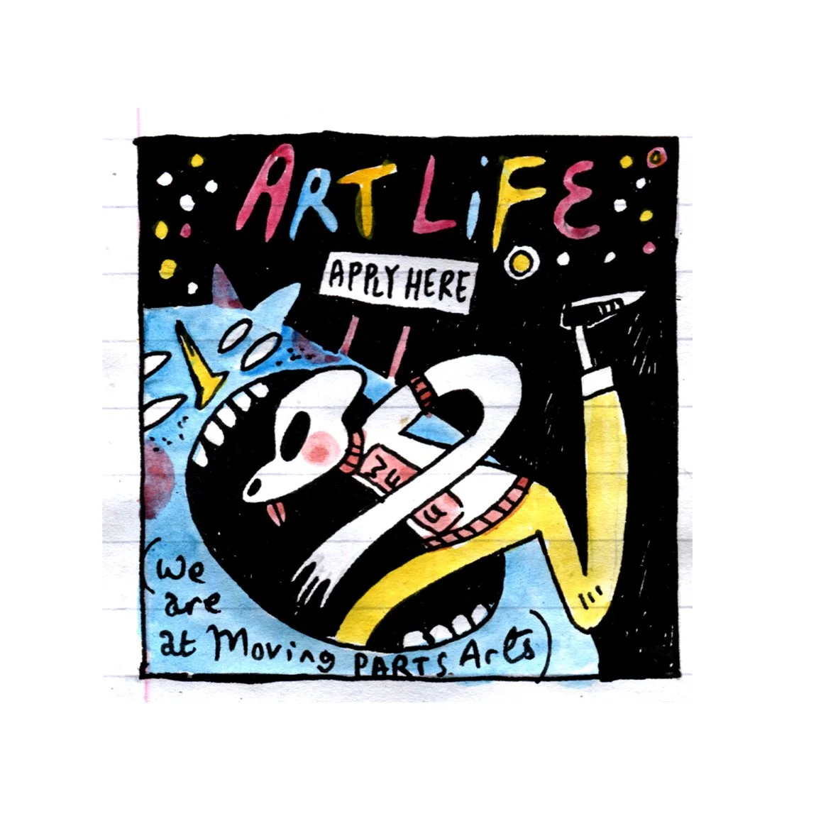 That’s been April’s Art Life. I hope you enjoyed the puppet festival as a haunted and disjointed background to this missive. The images for this post were drawn in Newcastle City Library. A place I knew before only as the 2 a.m. stop for the London-bound Megabus.