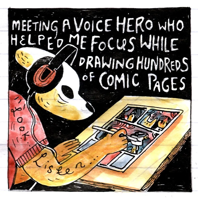 It is a lonely road, this illustration business. And since I started pursuing it seriously in 2010, podcasts have been one of my constant companions. There is radio, Youtube playlists and sometimes, good old fashioned albums (in digital form on my computer…) but MFM was drawn so deeply into some of the more complicated pages of The Shenk I can hear the episode when I look at them. Like a really modern and not very frightening stone tape…