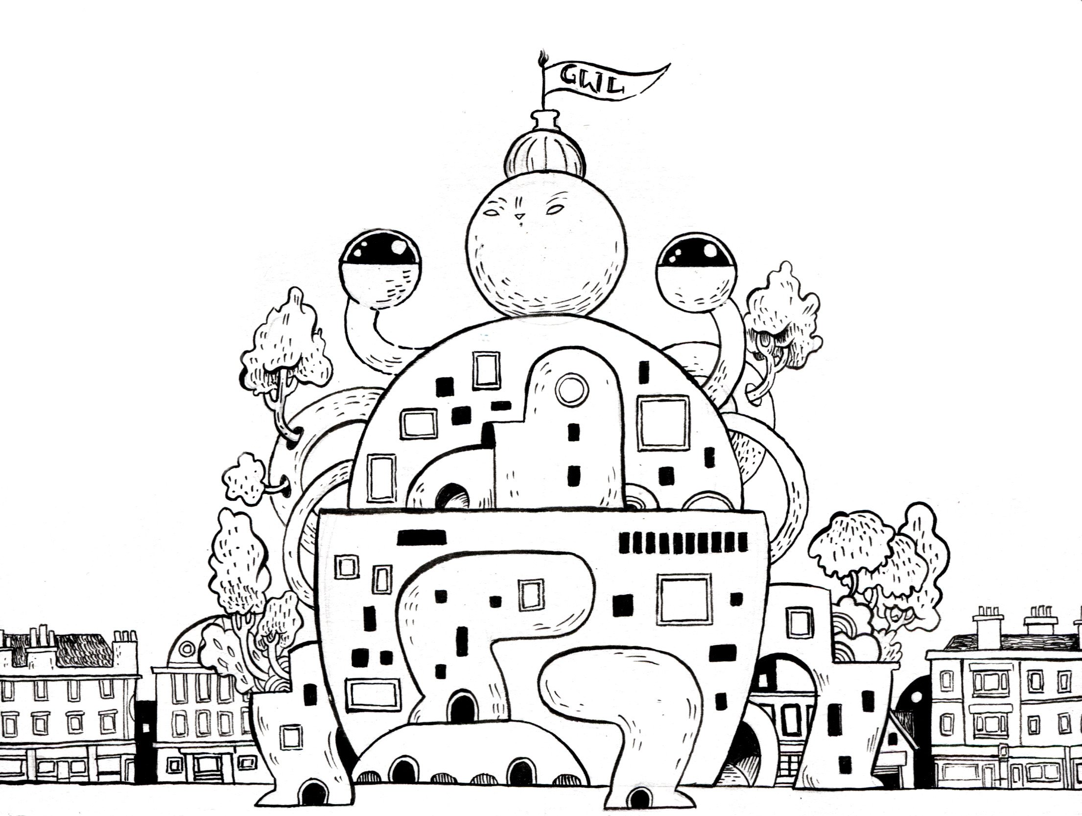 Brushes, black ink and pens translate the words into visions. Queer, we are good at building our own worlds when the systems we a forced to live in are compounded violences out to destroy us.